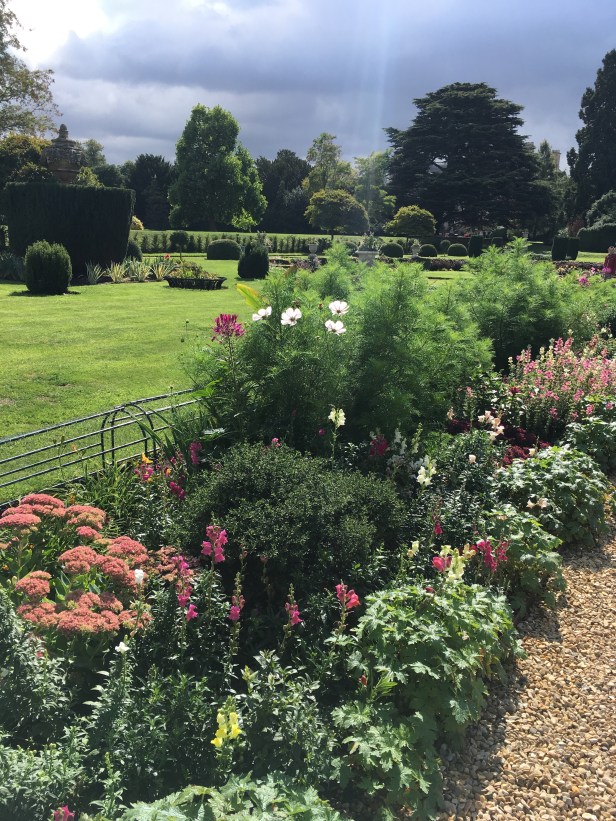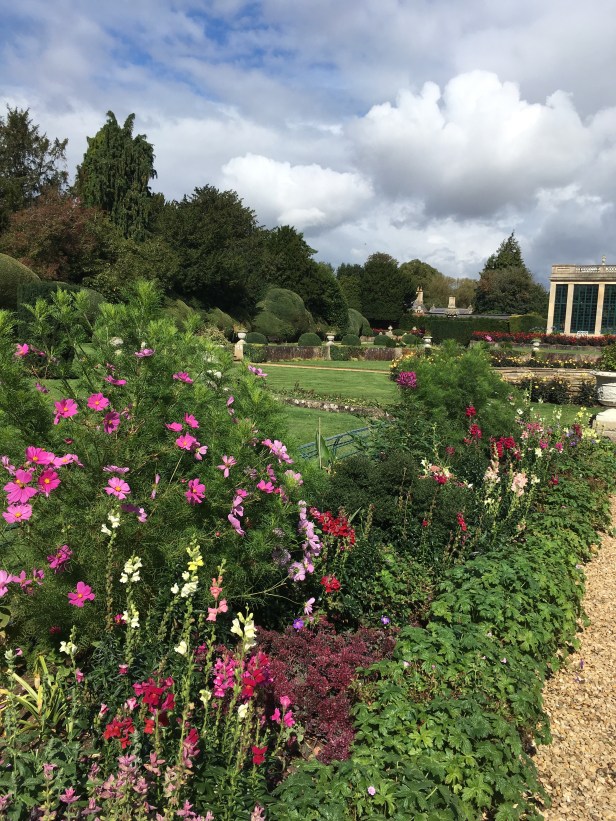 訪れた9月は、花々が美しく、オランジュリー(温室)の前に広がるイタリアンガーデンの花壇の眺めは、ひとつの芸術品といってもよいものでした。ハウスの中の凝った装飾を見たあとに、青空のもと花々が咲き乱れるガーデンを歩くと、美しいものに囲まれている満足感で全身が満たされたような気分になりました。