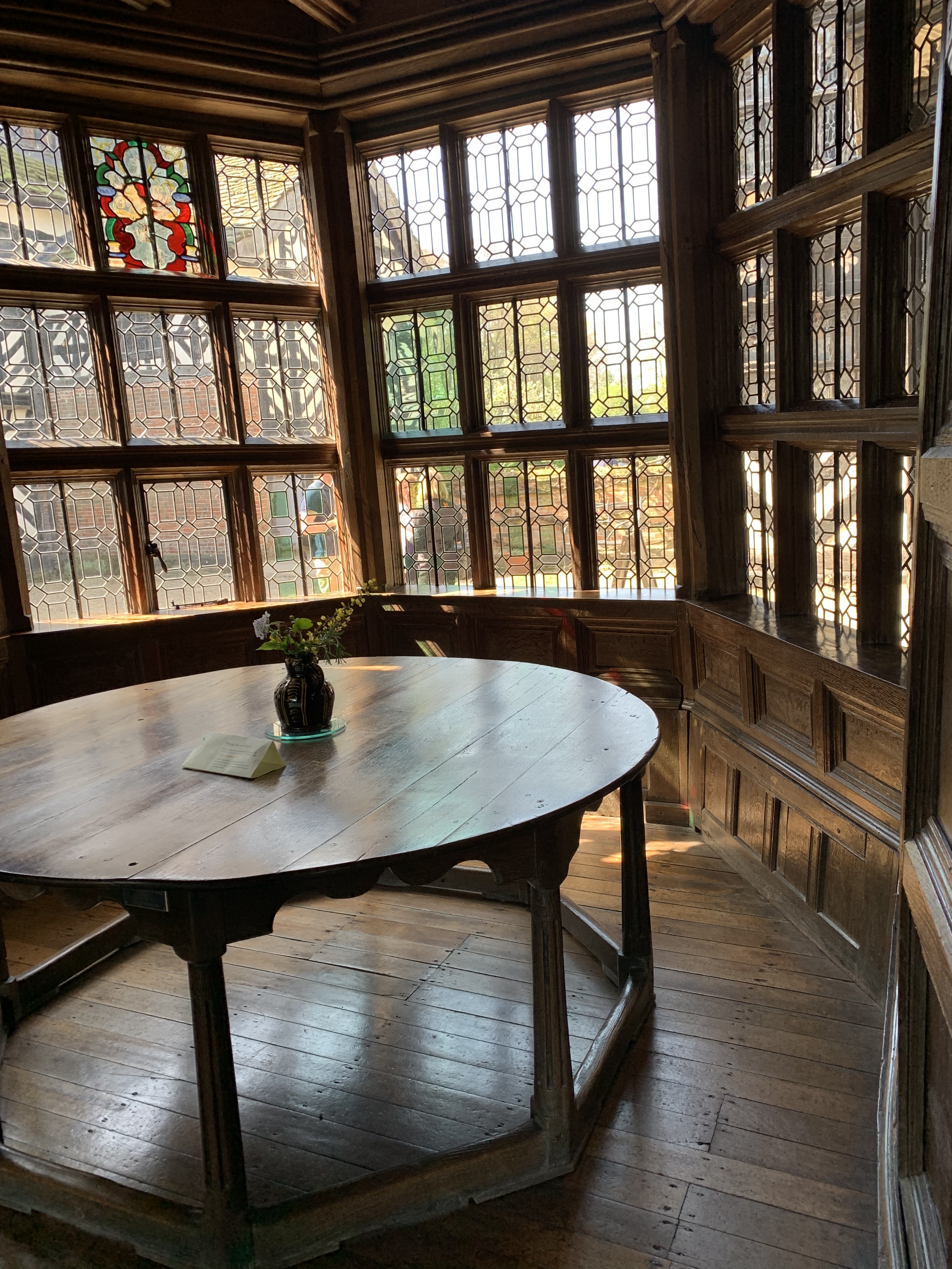 グレートホールの一角にあるベイウィンドウのコーナー。コートヤードを臨む。