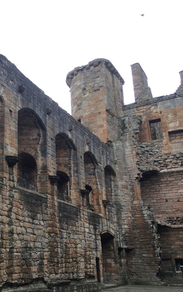 スコットランド王ジェイムズ1世(1394-1437,在位1406-37)はイングランドでの18年に渡る人質生活中(厚遇されていました)、宮殿が王の権威を高めるために、いかに重要であるかを実感し、スコットランドに帰ってから、各宮殿の整備強化にとりかかります。1425年から改築・修繕を開始し、1429年にはランス大司教を迎えておもてなしができるまでに、整います。1437年の王の死まで改築は続けられましたが、王の死で工事は休止します。