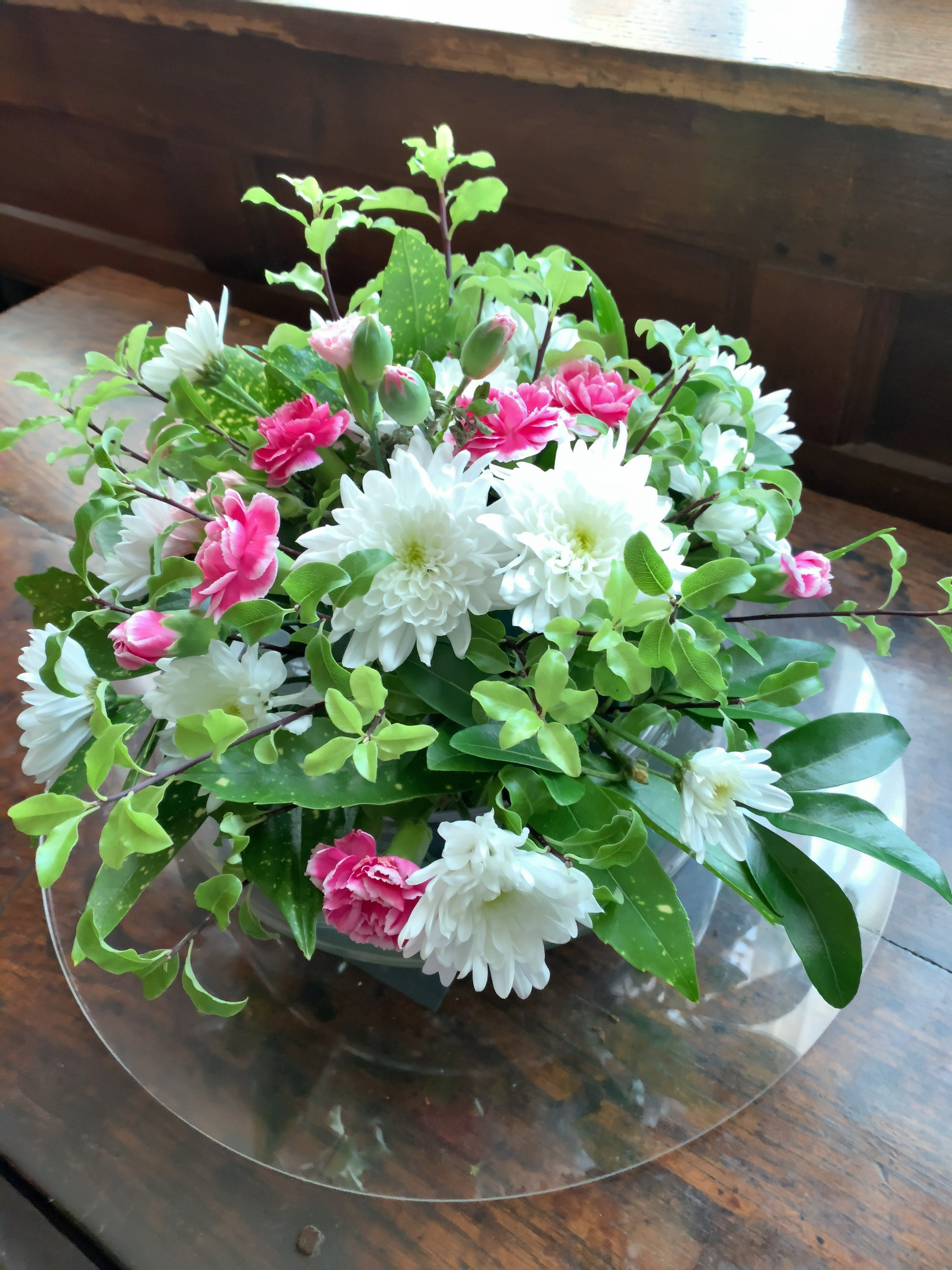 朝は、もう霜が降りるほどの寒さですが、野菜やお花はまだ元気です。冬の間、池にのせる大きな蓋もおいてあります。