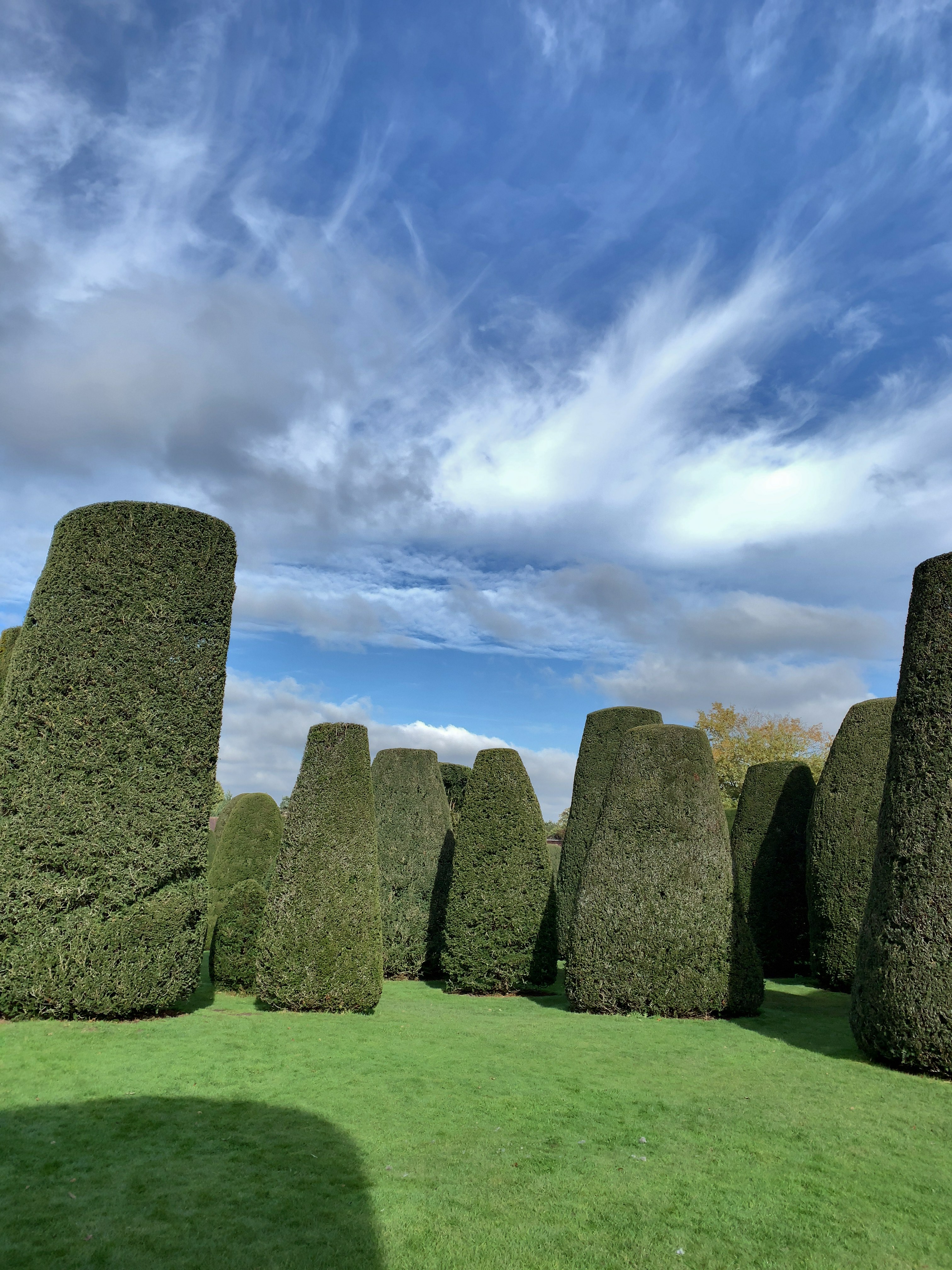 いくつかのゾーンに分かれている庭の中でも、迫力にあふれるのが、「ユーガーデン」(イチイの庭)です。12使徒をイメージしてつくられた植栽とされるものの、いつ頃誰が、このガーデンを造ったかは、はっきりしないようです。ユーガーデンでは、大人も子供も“かくれんぼ”をしたくなるようで、大人同士でも興じている姿が見られました。なんてのどか・・・。