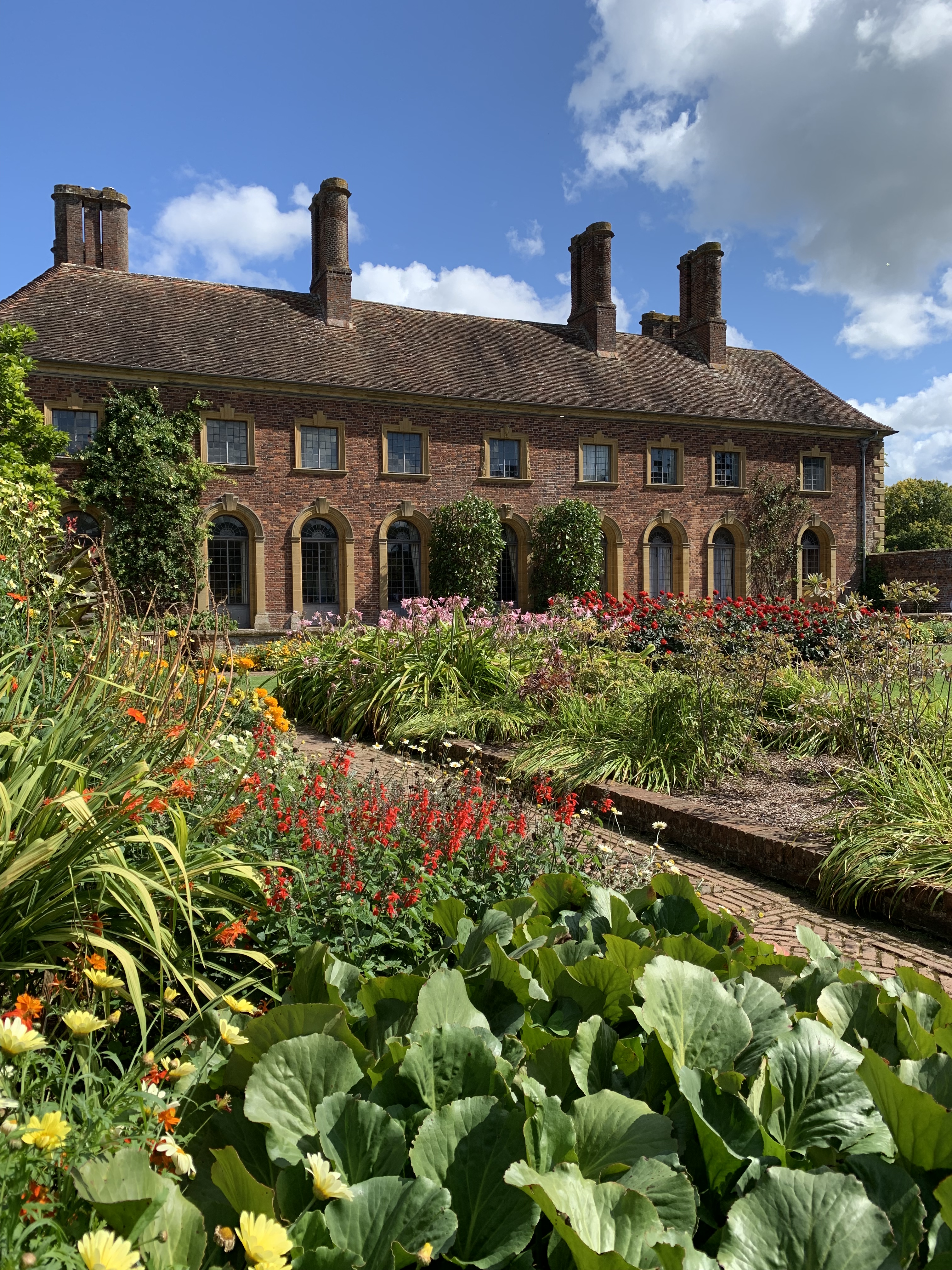パーキングから、キッチンガーデンの横をぬけ、さらに噴水のあるガーデンをぬけて、ハウスにたどり着きました。ハウスは、2棟ありますが、ひとつは典型的なエリザベス時代様式で、もう1棟はモダンな感じのアネックスといった風貌のストロードハウスです。(ストロードハウスは17世紀に建てられた厩が後に改造されて住居棟になりました。)