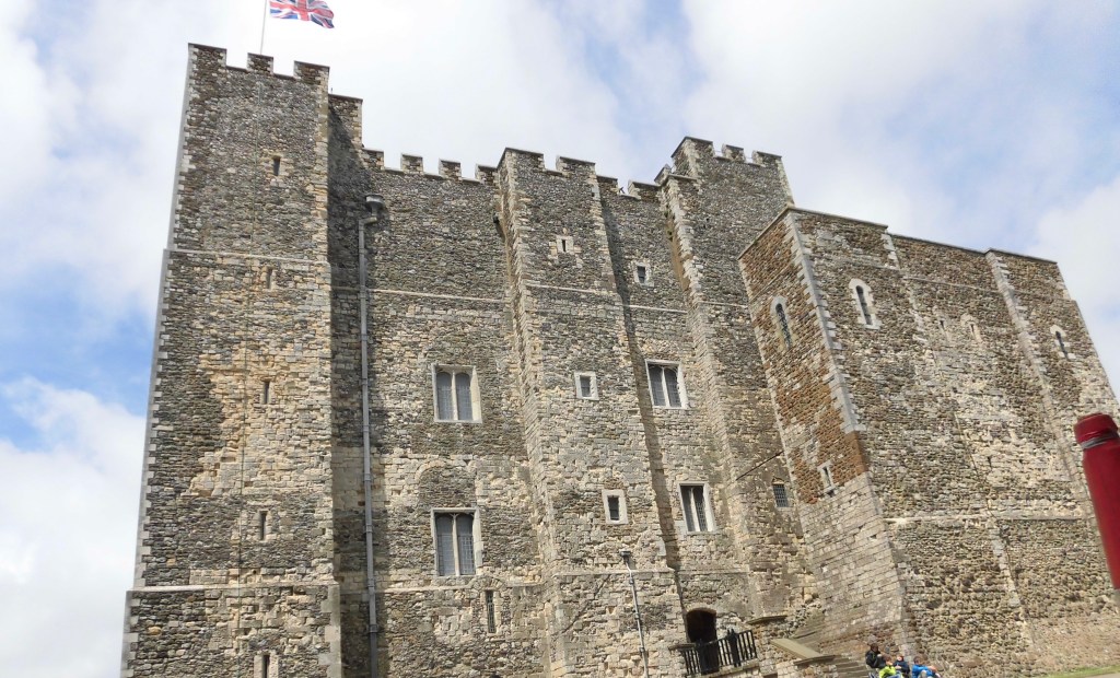 ドーバーカースルは、天然の要塞ともいえる、切り立った白いチョークの岸壁の上の丘に建ち、古くはローマ人が要塞を構えていました。そのあとサクソン人がローマ人の要塞跡を利用して拠点をつくり、その後ケントの王がその拠点跡に教会を建てます。そこへウィリアム征服王(1027?-1087)がやってきてドーバーの町全体を焼き払い、新たな要塞をつくりました。