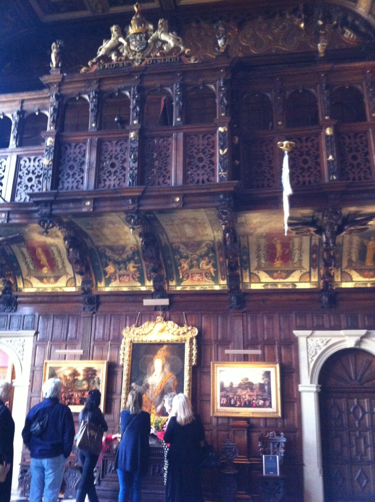 ハットフィールドの顔と言えば、「マーブル・ホール」。Netflix「Crown」シーズン2ではフィリップ殿下が戴冠式準備委員会の総裁になり、会議で熱弁するシーンがこの部屋で撮影されています。また、ケイト・ブランシェット主演の映画「エリザベス・ゴールデンエイジ」ではウォルシンガムの臨終のシーンがこの部屋で撮られています。ウォルシンガムの臨終のベッドルームがハットフィールドのマーブル・ホールというのが、ひねりが利いています。他にもこの部屋はよく撮影に使われています。