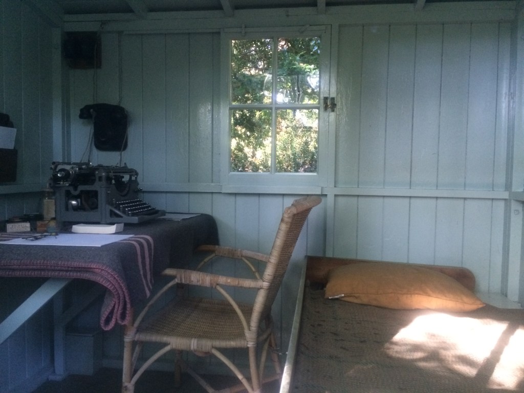 ショウは毎朝、このハットで、創作を進めていました。ハットは今もそのまま残されていますが、魅力的なのは、日照に合わせて建物の角度を変えられる可動式の造りです。林を背に南に向けて建て、時間により角度を自ら調節していたとのこと。中には、デスクとベッドのみの簡素なハットですが、そのこじんまりした空間は、創作に集中するのに最適な環境と言えるでしょう。