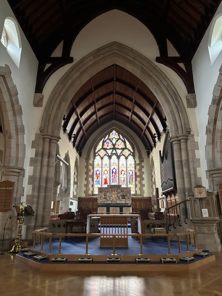 湖水地方、アンブルサイドの町にあるセント・メアリー教会です。大きな教会ですが、町の路地の奥にあり、着いたと思ったら教会の門が固く閉じられており、どうしようか…と向かいにあった小学校に、車を停め相談すると、「あと5分ほどで門は開くと思うわ」との答え。行ってみると、なるほど門は開いていました。しかしこの門が車がギリギリ通れるくらいの狭い門だったのですが、恐る恐る門を通り、無事に車を停めて中を見学することができました。