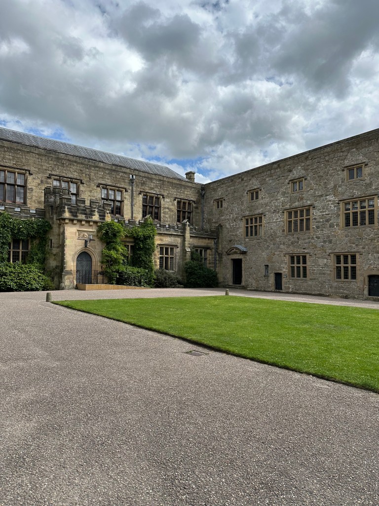 カントリーハウスには、その起源を中世の要塞、中世の教会や修道院を辿るものが多くあります。起源が要塞の場合、その多くは小高い丘の上にあります。ワイト島のキャリスブルック(本サイト参照)、ノッティンガム・カースル(本サイト参照)などがその例で、キャリスブルックは自転車で行ったのですが、猛暑の中、自転車を押して上がるその道のりの厳しかったこと… 着いた時には疲労困憊でした。ノッティンガムでは、宿泊したB&Bのオーナーのご厚意により、カースルまで車で送っていただきました。ピカピカの白いポルシェに乗せていただき、ブォーンとエンジンを鳴らしながら急な坂を上がるのは、とてもよい気分でした。