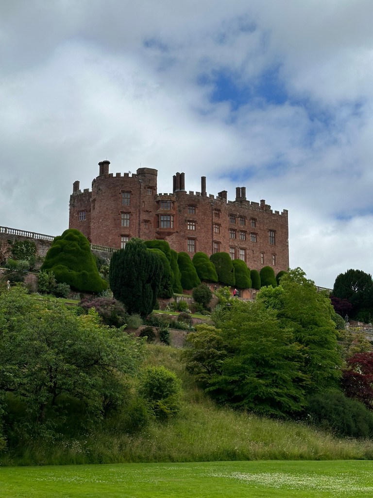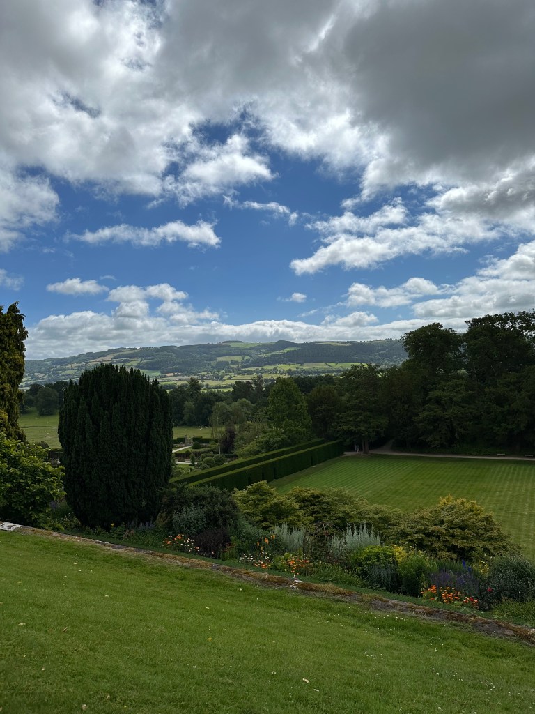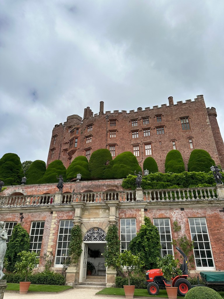 丘の上に聳えるポイズ・カースル(以下ポイズ)は、セバーン峡谷を南に臨みます。ポイズの歴史は12世紀にウェールズの王子が住んだコッホ城まで遡りますが、現在の3階建の邸宅はエリザベス1世時代に増築されました。増築当時、大変な贅沢品だったガラスを使った窓が多数あり、施主エドワード・ハーバート(Edward Herbert, 1544-1595)が富裕だったことがわかります。