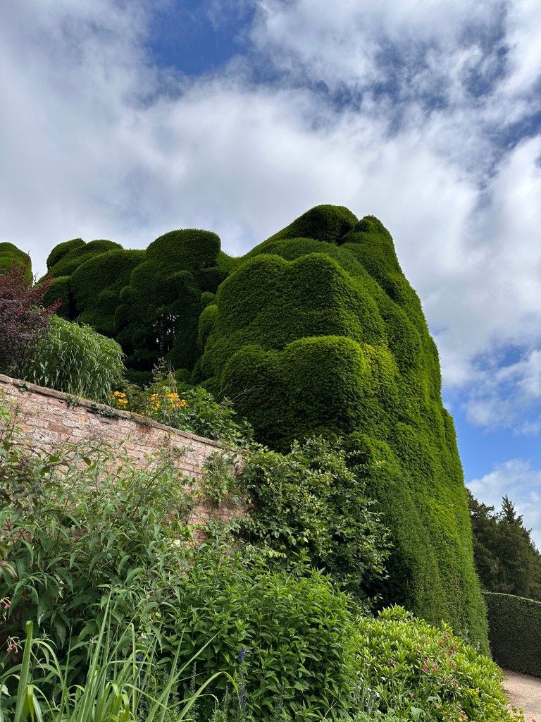 花壇の周りのイチイはユニークな形状に刈り込まれています。中には、大変珍しいとされる高さ9メートルにも及ぶイチイもあります。